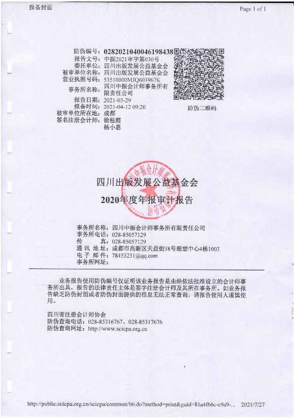 四川出版发展公益基金会2020年度审计报告